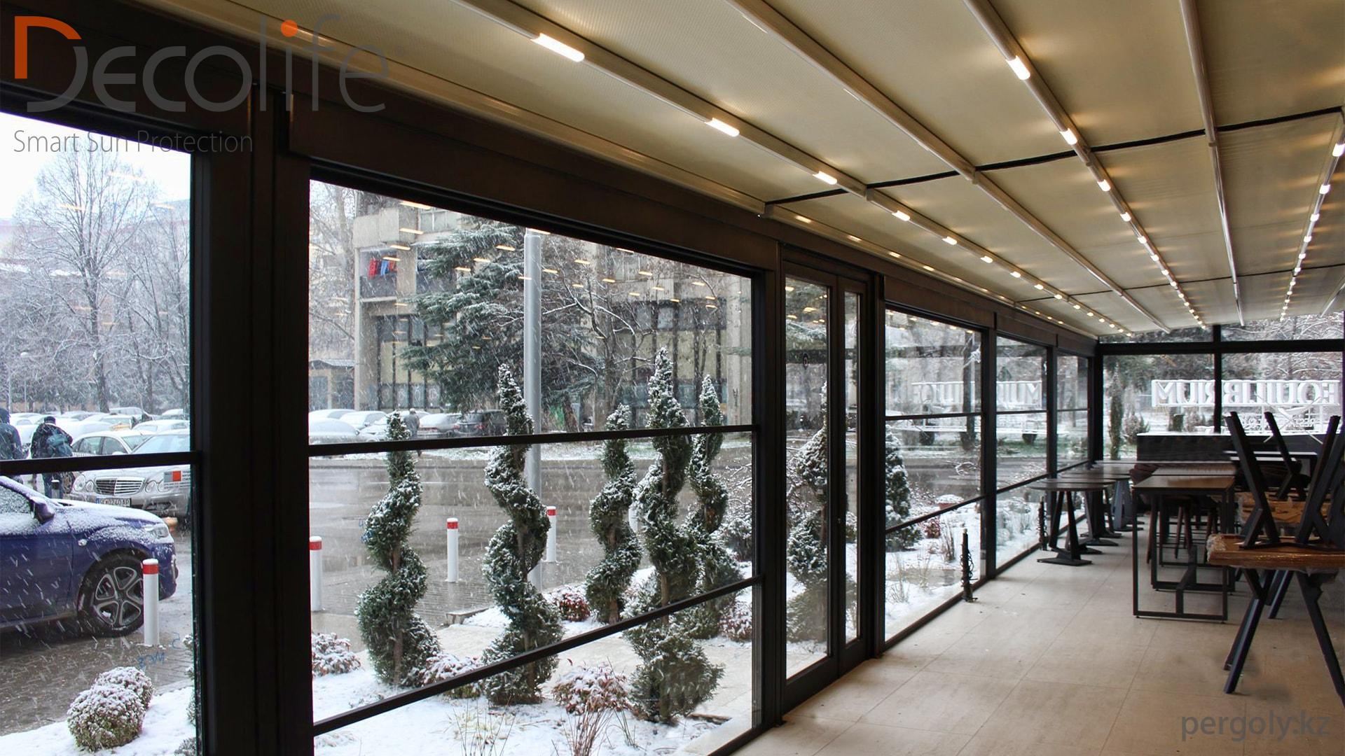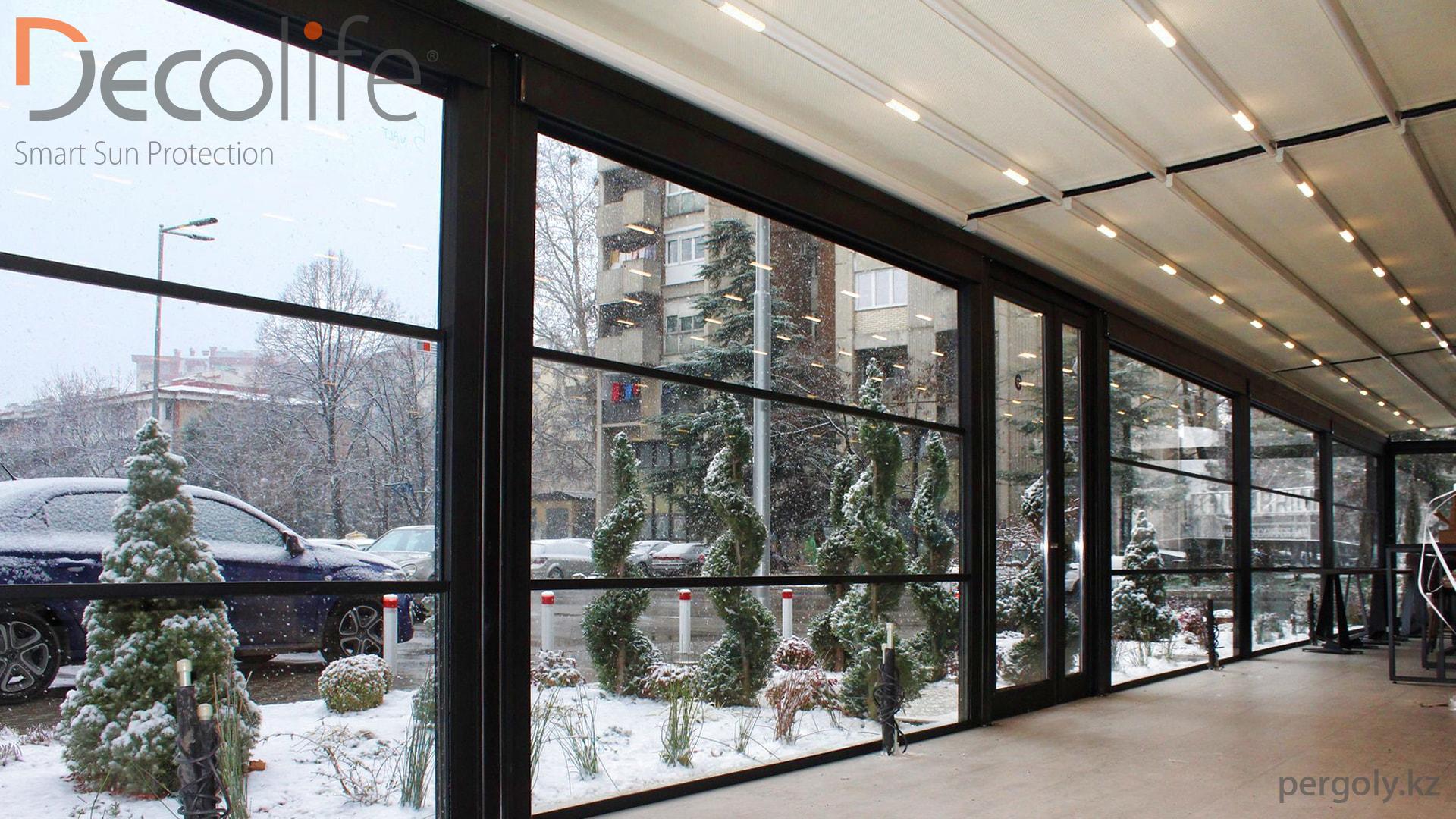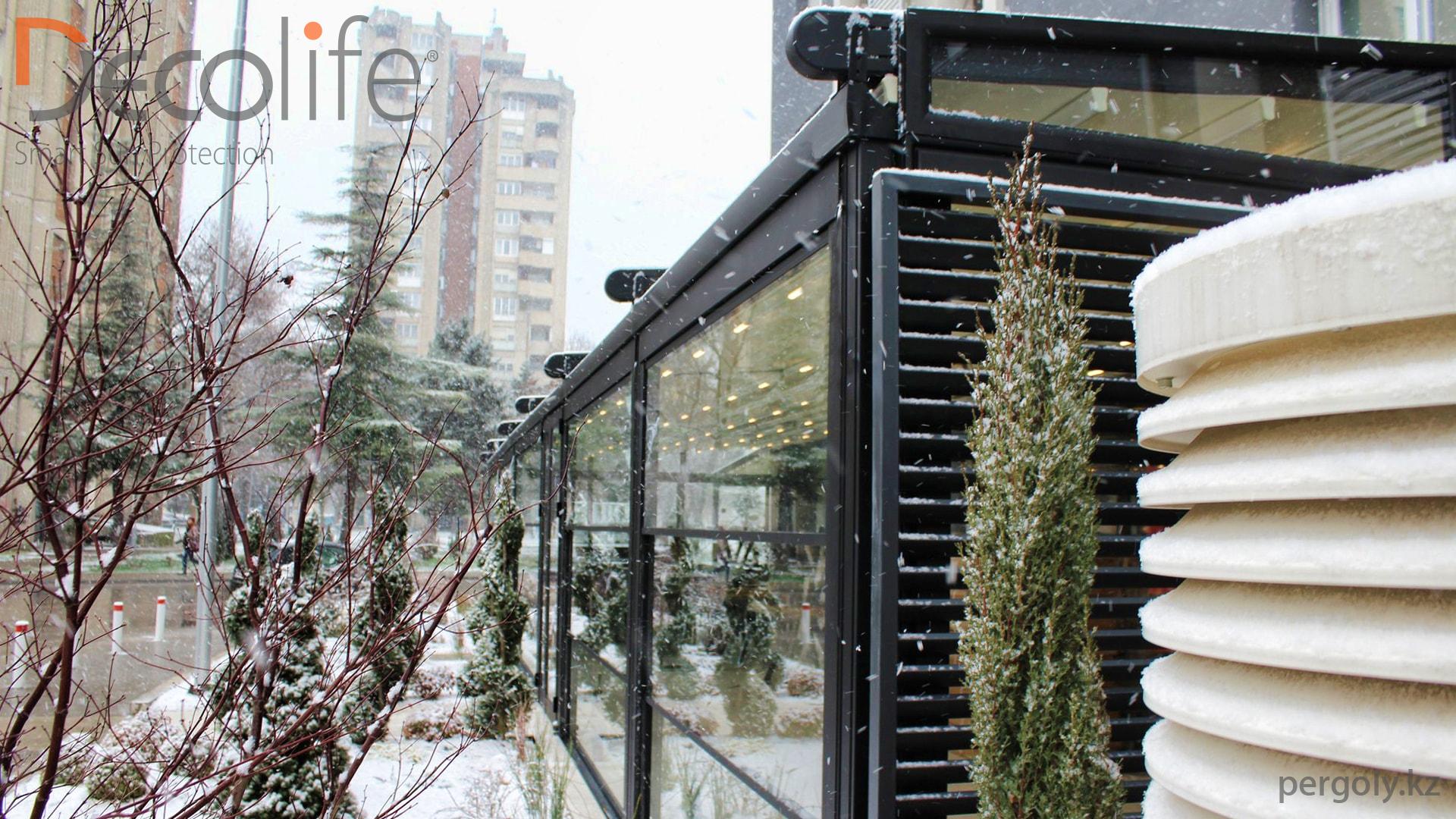 Пергола Decolife Pro + гильотинное остекление