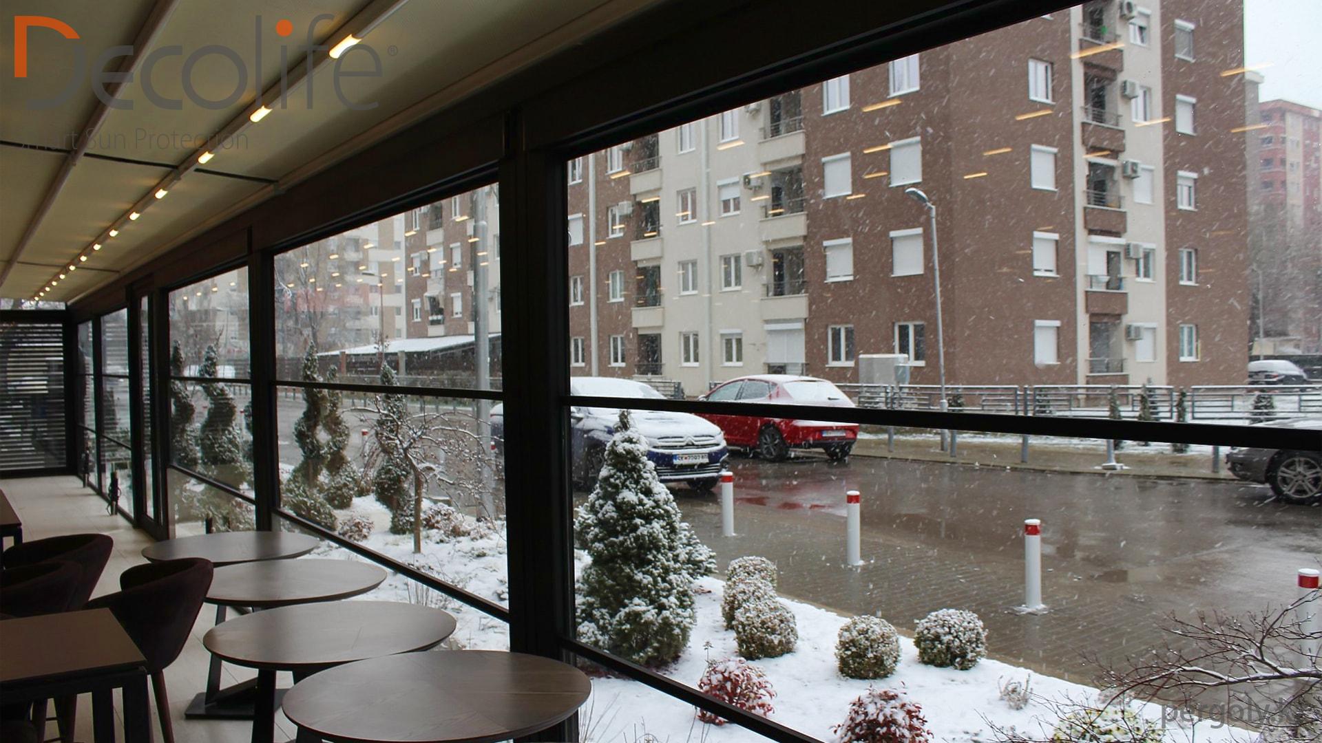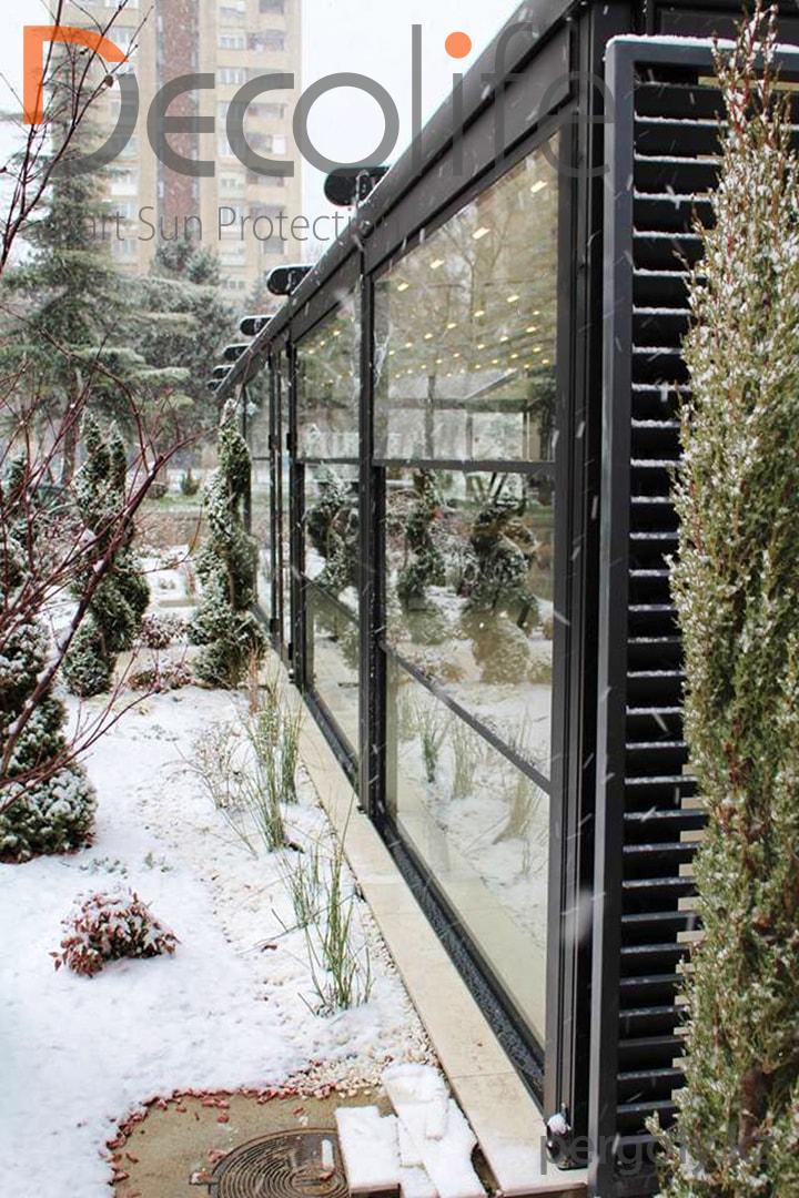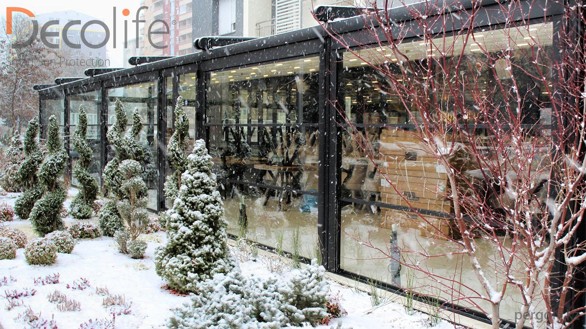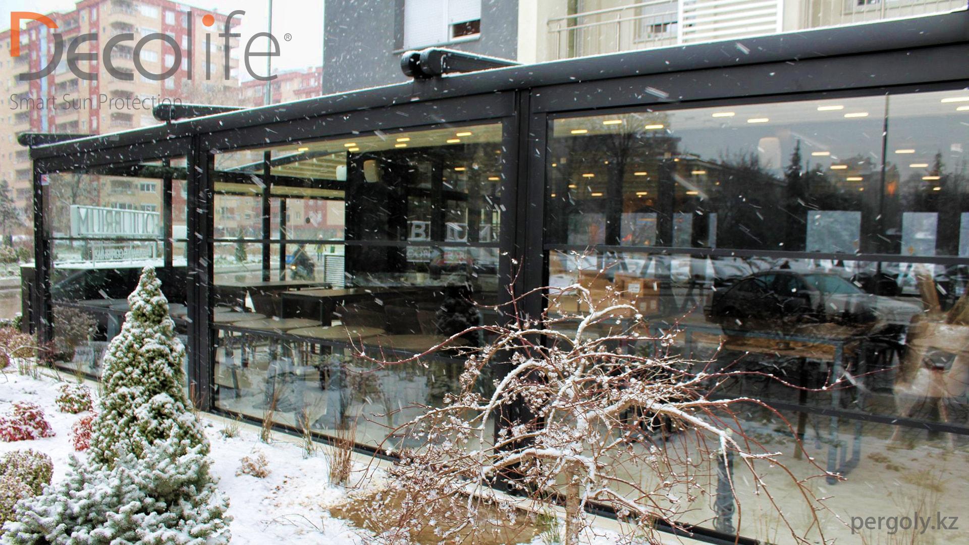 Пергола Decolife Pro + гильотинное остекление
